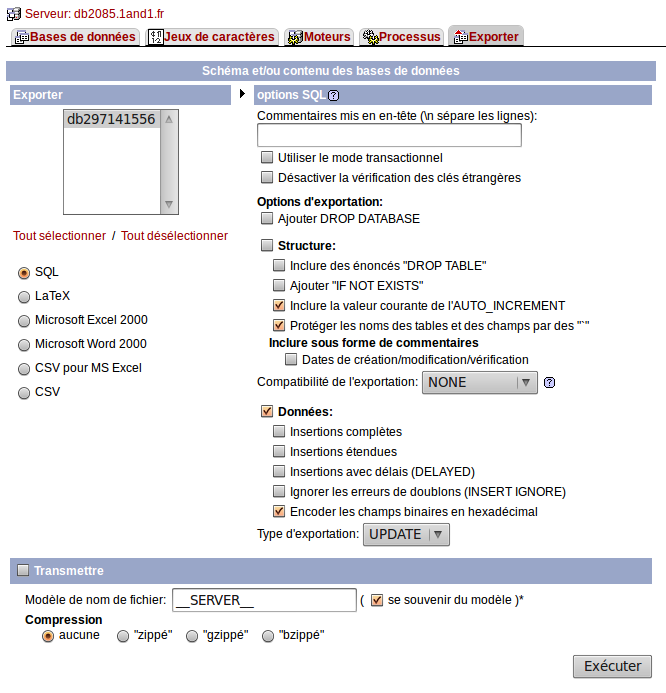 avec les extensions comme c’était puis je modifierai mon fichier configutation.php pour le relier à la base qui est restée.