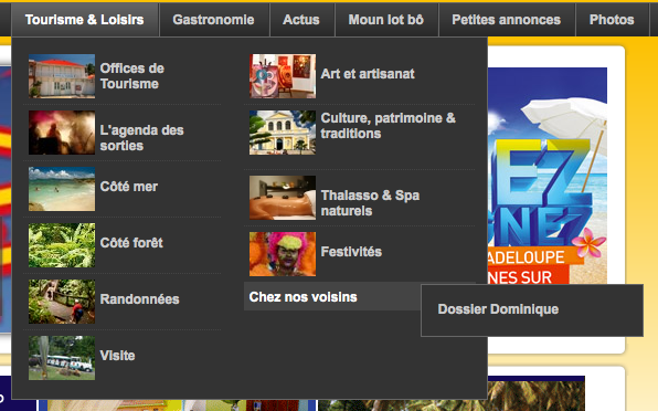 Pour ne pas encombrer la barre de menu et par soucis d'esthétique, nous avons créé un visuel (voir PJ) dans "Chez nos voisins" qui mènera aux sous catégories (Dossier Dominique...). Nous souhaitons donc que la sous (sous) catégorie Dossier Dominique n'apparaisse pas dans la barre de menu.