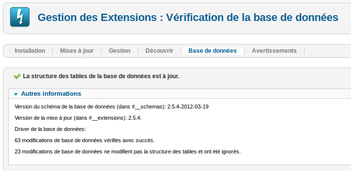 tu vas te rendre dans la gestion des extensions sur l'onglet Bases de données et voir si tu n'as pas de correction à faire