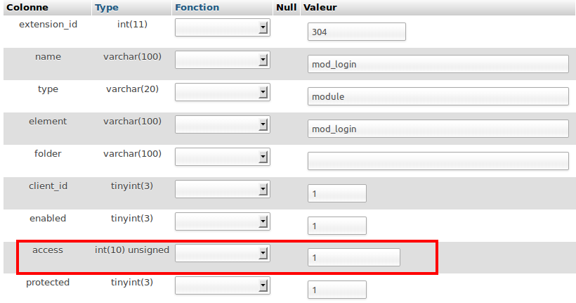 j'ai dû désactiver le pluging d'authentification et je vais sur la bdd mais malheureusement cela fait 3 heures que je suis dessus et grrrrrrr ce n'est pas ça.... je ne sais plus quoi faire et la sauvegarde s'est effectuée après le pb .