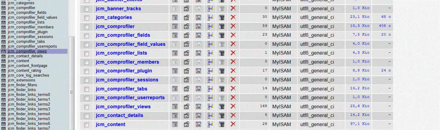 Voici une capture d'écran des lignes CB dans PHPMyAdmin.
