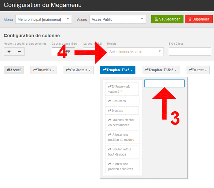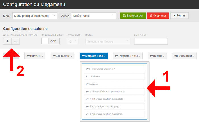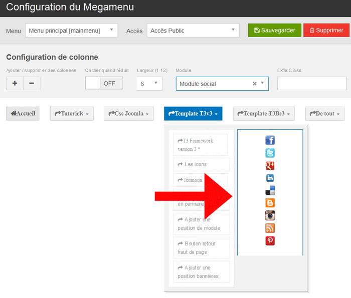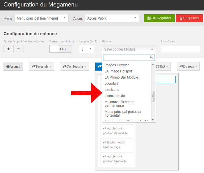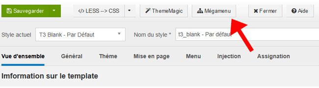 Accède à la configuration du megamenu