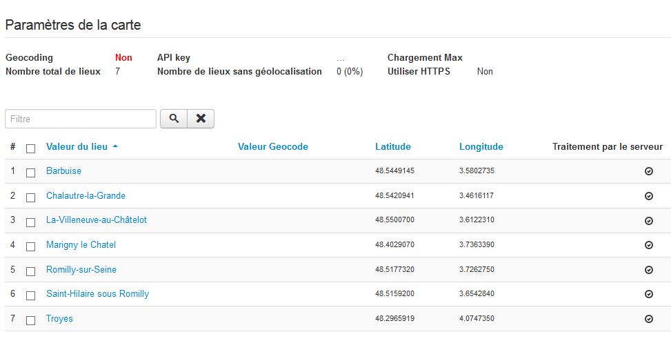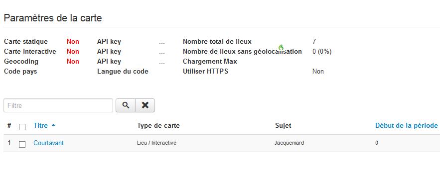 Je ne trouve rien à propos des API keys. Dans l'onglet des lieux que j'ai déjà renseignés, on peut voir :