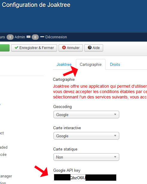 configurer Joaktree en copiant la clé API