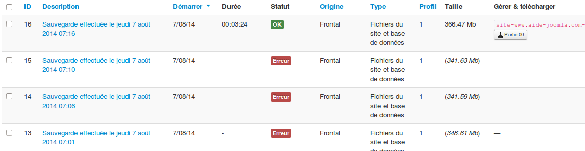 J'ai à plusieurs reprises reconfiguré autant le service cron que les paramètres d'Akeeba Backup, mais chaque matin je me retrouve toujours avec une erreur de sauvegarde et bien évidemment aucune opération n'est effectuée.